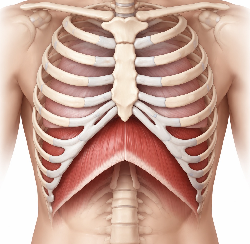 The diaphragm is the main breathing muscle under the ribs. It has a dome-like shape. When it contracts, it moves down and creates space for the lungs to fill. Then, when it relaxes, the air flows out again. Many riders try to “breathe into the chest.” However, that often creates more effort and more tension. Instead, I aim for a low breath that lets the ribcage expand without raising the shoulders. Consequently, my trunk stays stable while my limbs stay independent.